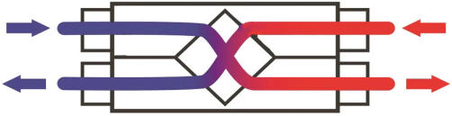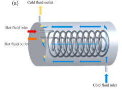 This device uses thermal conduction and convection to transfer heat between two separate fluids — usually
