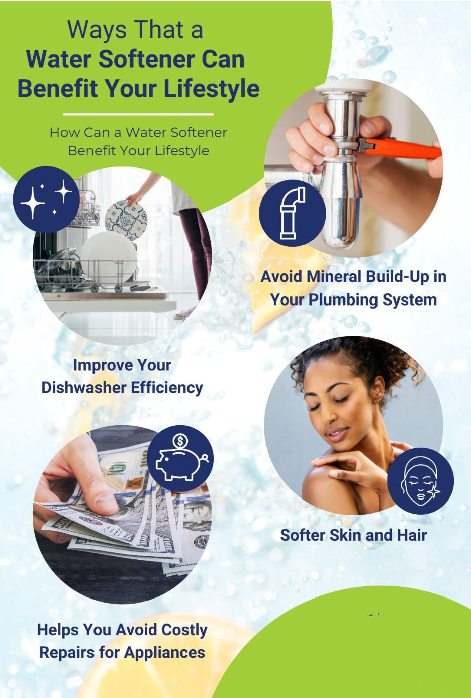Protects Your Home Prevents scale buildup in pipes, faucets, and appliances. Extends the life of water heaters, washing machines, and dishwashers.   Improves Cleaning Soap and detergents lather better and rinse cleaner. Laundry stays softer and brighter, dishes sparkle.   Better for Skin & Hair Soft water is gentler on skin, hair, and nails. Reduces dryness and irritation caused by hard water.   Saves Energy & Money Appliances work more efficiently with less scale buildup. Reduces energy bills and maintenance costs.   Convenience & Comfort Soft water for drinking, bathing, and household use. Maintenance-free — just add salt!